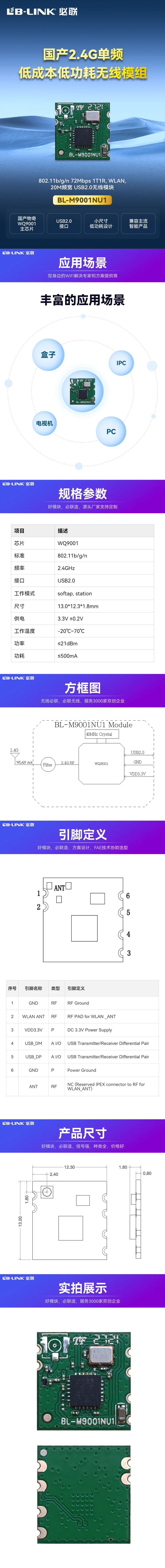 1T1R 802.11b/g/n WiFi模组