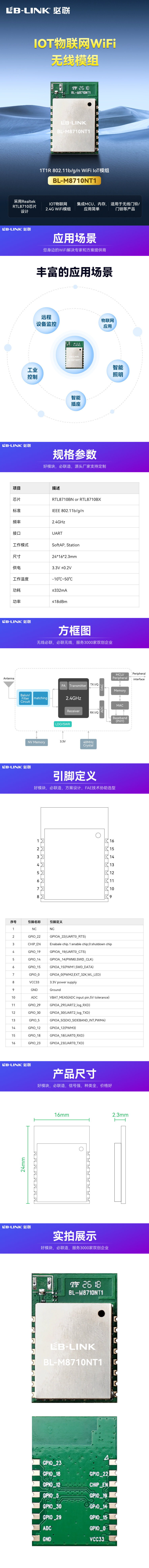 1T1R 802.11b/g/n WiFi IoT模组