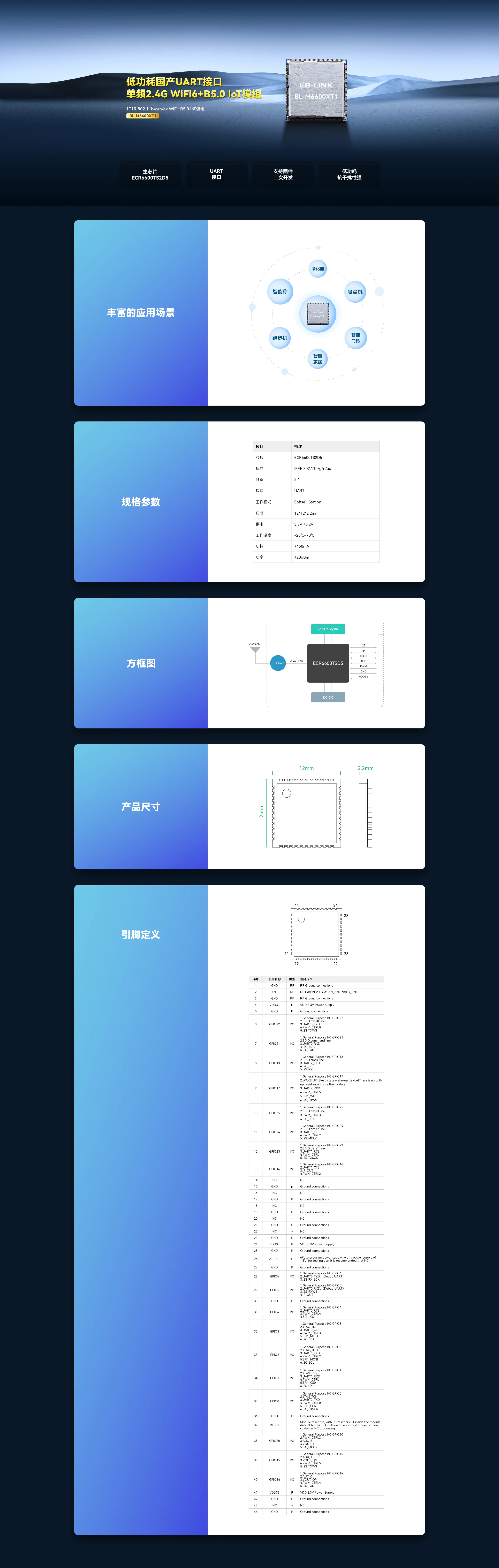 1T1R 802.11b/g/n/ax WiFi+B5.0 IoT模组